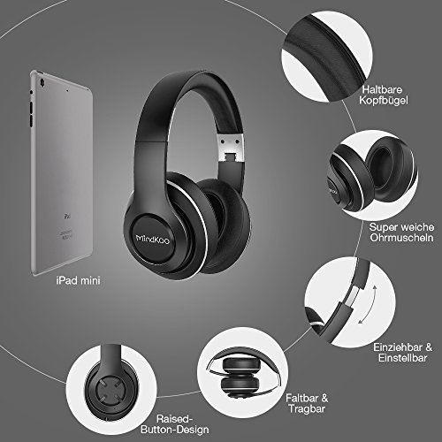 Auricolare bluetooth sopra l' orecchio, Mind Koo senza fili pieghevole Headset con morbido Memory Foam Cuscinetti Auricolari, Dual Driver da 40 mm, microfono integrato e modalità cavo per smartphone, tablet, laptop e pc