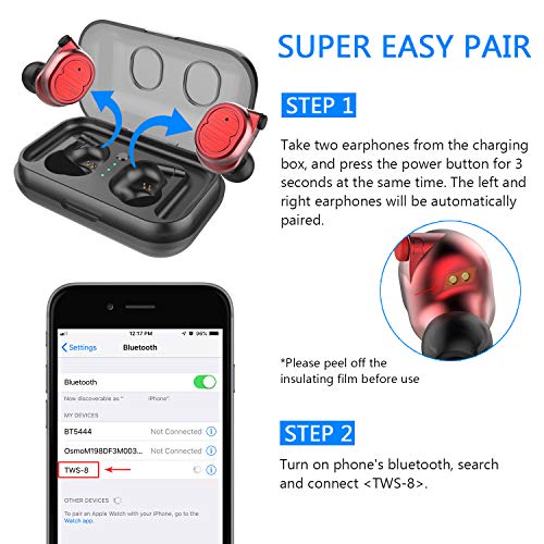 Mini auricolari wireless invisibili: i più piccoli auricolari veramente wireless, la struttura in-ear ti conforta quando si indossa e previene efficacemente la caduta degli auricolari. Il microfono integrato consente di rispondere alle chiamate, di qualità audio eccellente, auricolari wireless ideali per chiamate in auto, chat o lavoro. Compatibile per iPhone e iPad, tablet, laptop, compatibile con Samsung e la maggior parte degli smartphone Android o dispositivi wireless.