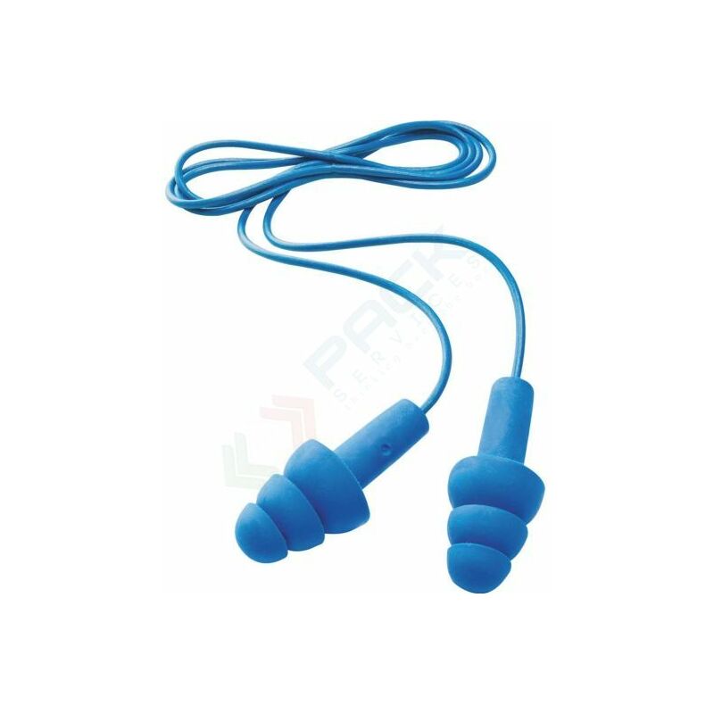 Inserti auricolari riutilizzabili in elastomero termoplastico di forma anatomica con struttura a flange con superficie liscia che ne aumenta l'igiene e il comfort. Idonei per un utilizzo prolungato. Consigliati per utilizzo nell'industria alimentare. Rilevabili dal metal detector. Auricolari per orecchie attenuazione in Db 32 SNR, certificati EN 352-2. Colore blu