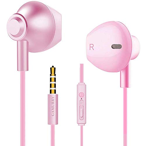 Auricolari, Metal Cuffie con cancellazione del rumore, Cuffie In-Ear Bassi Potenti Alta Definizione con Microfono e Controller, Headset Stereo 3.5 mm per iPhone/iPod etc. (Rose gold)