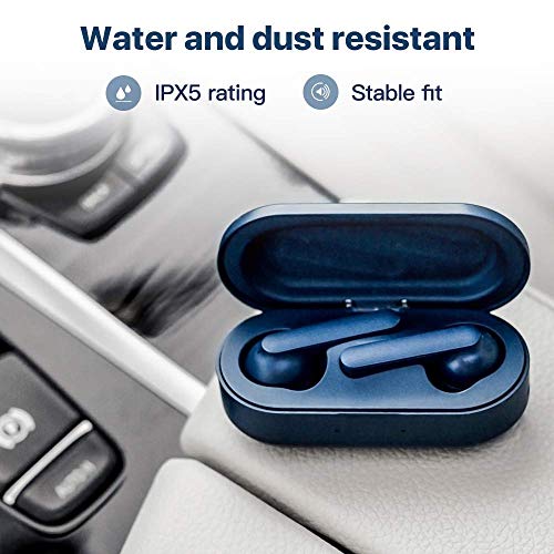 Gli auricolari Mobvoi Free con bluetooth wireless e custodia per la ricarica, sono impermeabili all'acqua ed hanno un suono chiaro e pulito grazie al filtro per i rumori esterni colore - Blu