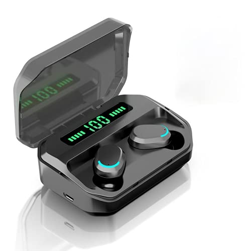 Auricolari senza fili Bluetooth V5.0 TWS, 2200 mAh, con display a LED con cuffie Power Bank con microfono (nero)