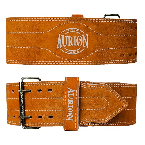 AURION - Cintura per sollevamento pesi in vera pelle, per uomini e donne, resistente, comoda e regolabile con fibbia, supporto stabilizzante per sollevamento pesi (medio, marrone)