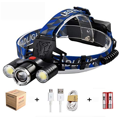 AuRiver Lampade da Testa,3000 Lumen LED Lampada Frontale USB Ricaricabile Torcia Lampada, 4 modalità con Cinghia Regolabile Lampade Testa, Perfetto per Correre, Camminare, Campeggio, Pesca