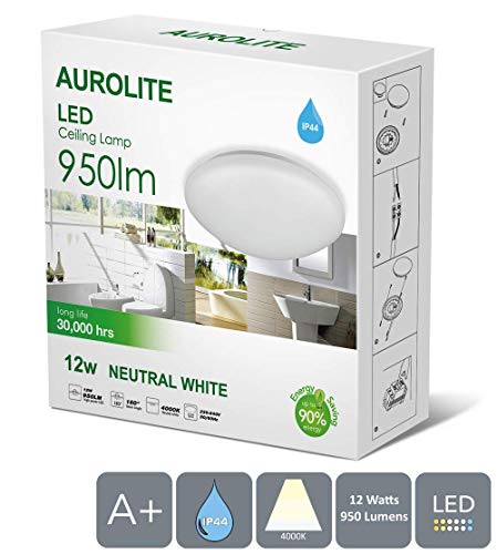 Aurolite - Plafoniera, LED 12 W IP44, Ø 26 cm, 950 lm, da bagno, cucina, corridoio, ufficio, soffitto, alta qualità (4.000 K)