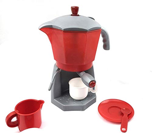 Aurora Store Maxi Caffettiera Giocattolo Moka Rossa Junior Set caffettiera Cappuccino da 9 Pezzi con Accessori tazzine Funzionante Come Quella Reale