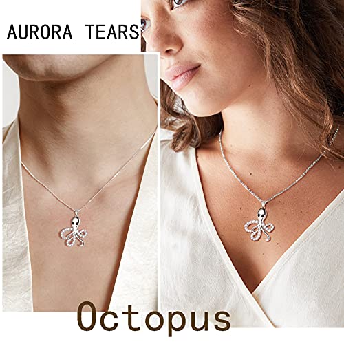 Aurora Tears Collane a forma di polpo in argento Sterling 925 con ciondolo a forma di pesce oceano e zirconia cubica per donne regali di compleanno per ragazze DP0308W