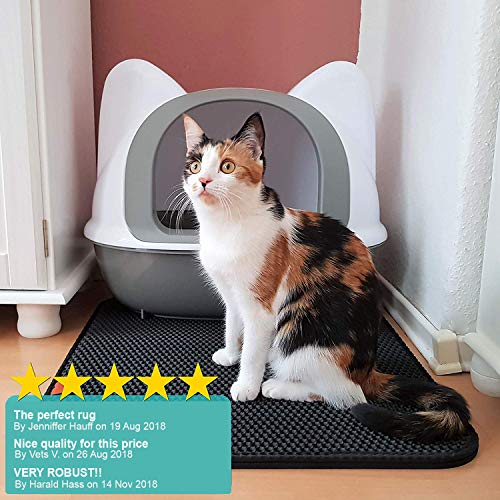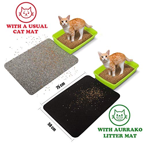 Aurrako Tappetino Lettiera Gatto Doppio Strato,Grande Tappeto Impermeabile Favo Adatto per Toilette per Gatti Chiusa Autopulente, Facile da Pulire Il Pavimento (Nero) (76x61cm)