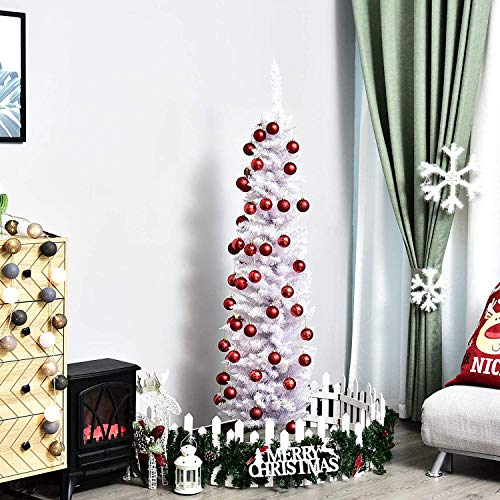 Aurstor Basa, albero di Natale bianco artificiale in PVC, 150 cm, albero di Natale con gambe di albero di Natale in metallo