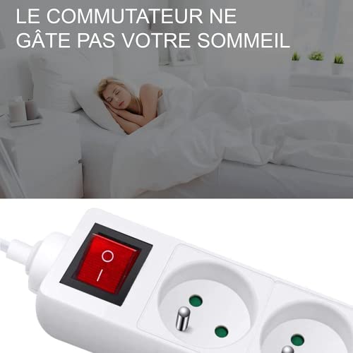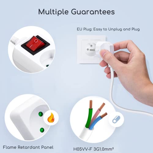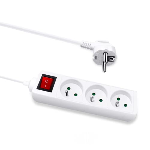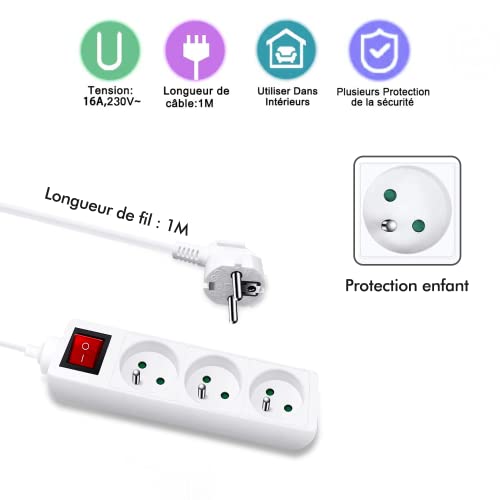 AURSTORE BASA Multipresa con Interruttore, Prolunga Multipresa Elettrica, 2P+T Estensione di alimentazione da 1 metro, Sicurezza Bambino 16A 230V (3 Prese)