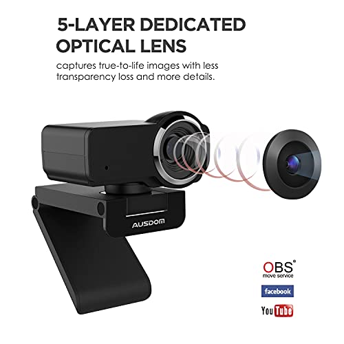AUSDOM AW635 HD 1080p Streaming Webcam con Microfono per PC, USB Web Camera Non grandangolare Perfetto per Fare Video lezioni e Video chiamate casa Lavoro apprendimento a Distanza Mac Computer Zoom