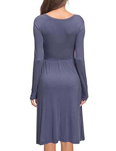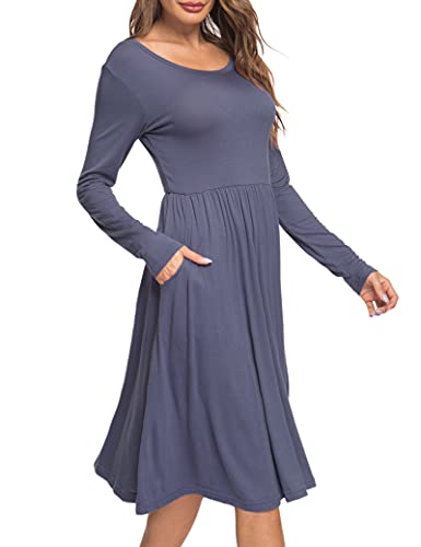 AUSELILY Abito Casual a Maniche Lunghe da Donna Abiti Svasato a T-Shirt con Tasche Vestito a Vita Impero a Pieghe Sciolto (Viola Grigio, S)