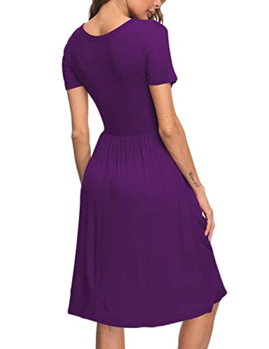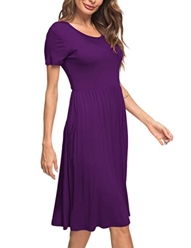 AUSELILY Abito Donna Estivo Vestito Casual Manica Corta Abiti Stile Impero al Ginocchio con Tasche a Pieghe (Viola, M)