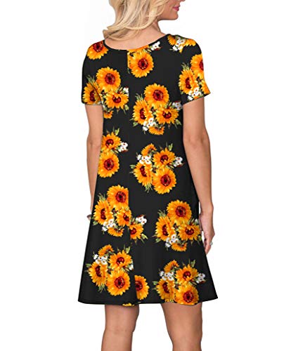 AUSELILY Abito Estivo Donna T-Shirt Casual Vestito a Manica Corta Abiti Corto con Tasche Scollo a Rotondo