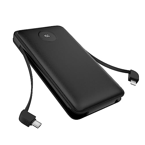Auskang Powerbank 10000mAh con cavo, 22.5W PD Powerbank Piccolo ma potente, ultra sottile Power Bank, LED Display Battery Pack, Compatibile con iPhone, Samsung, Huawei, Xiaomi ecc (Nero)