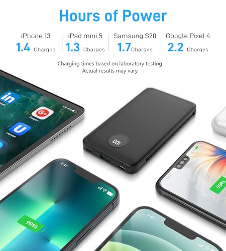 【Alta capacità e compatibilità con molti dispositivi】 La compatta power bank ha una grande capacità di 10000mAh. Può caricare iPhone 12 Pro / 12 2.3 volte. Può anche caricare AirPods 13 volte, Samsung S20 1.5 volte. Compatibile con la maggior parte dei telefoni, tablet e altri dispositivi elettronici sul mercato.