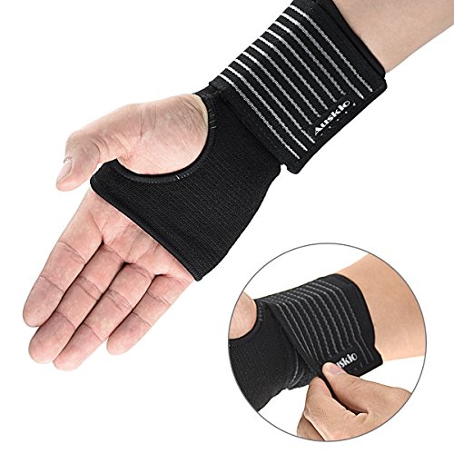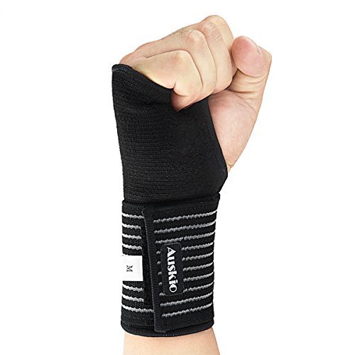 Auskio - fasciatura da polso regolabile, tutore da polso, protezione per polso ideale per sindrome del tunnel carpale o distorsioni del polso nella vita di tutti i giorni, adatto per aumentare la stabilità del polso durante lo sport, per la destra e la sinistra, colore nero