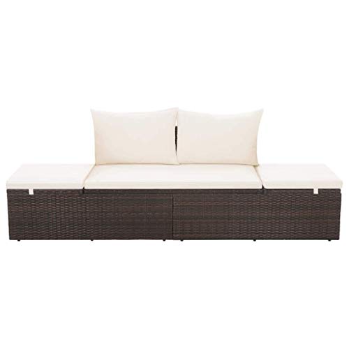 Ausla Divano letto da giardino in rattan sintetico con 1 cuscino di seduta grande e 2 cuscini 195 x 60 x 60 cm (marrone e bianco crema)