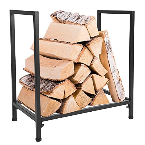 Ausla Supporto per legna da ardere, in ferro battuto, per interni e stufa a legna da ardere, per camino, da esterno, resistente e impilabile in legno, 61,5 x 35,1 x 62,5 cm, nero