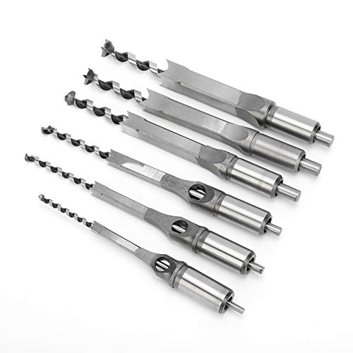Ausla Trapano Quadrato, Mini Morsa per Punte da Trapano da 6 Pezzi, Kit di Punte Elicoidali, Trattamento Termico, HRC48-50, per Mortasatura, Scalpellatura e Lavorazione del Legno