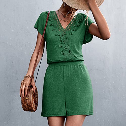 Ausla Tuta da Donna a Maniche Corte Tuta Corta Elegante Tuta Casual in Pizzo Cuciture Spiaggia Estiva Pagliaccetto Elegante a Maniche Corte(M-Verde)