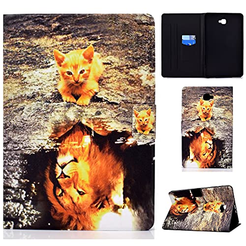 Auslbin Custodia per Samsung Galaxy Tab A6 10.1" 2016(SM-T580/T585),Cover con Porta Carte Portafogli slim in Pelle PU con Funzione di Supporto,Auto Svegliati/Sonno,Gatto e Leone