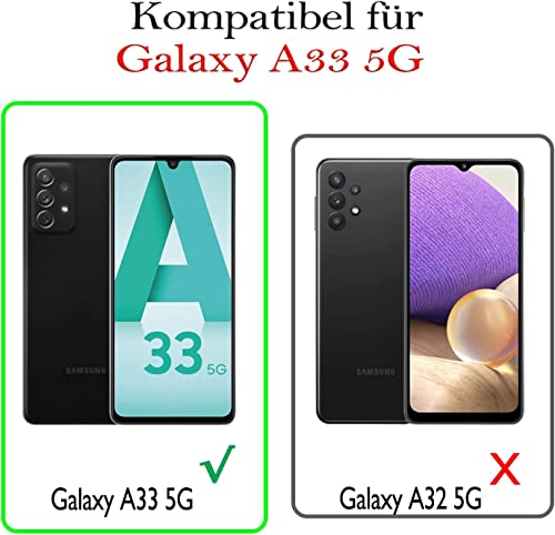 【Materiale di Samsung Galaxy A33 5G】Questa custodia in pelle per Samsung Galaxy A33 5G è realizzata a mano in ecopelle super resistente e il guscio interno è in silicone TPU. La custodia per Samsung A33 5G è resistente agli urti e garantisce una maggiore durata e una protezione superiore.