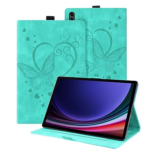 Auslbin Custodia per tablet Samsung Galaxy Tab S9+ 2023 12.4" Tab S7 FE S8+ S7+, Pelle PU goffrata a farfalla con funzione supporto, per SM-X810 X800 T730 T970, Verde
