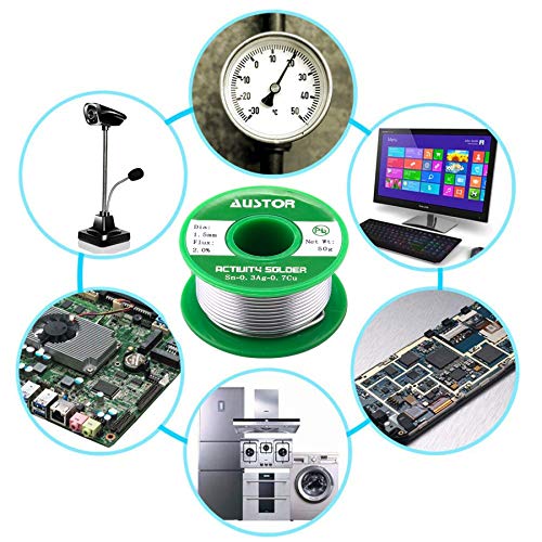 AUSTOR Filo di Saldatura senza Piombo con Anima in Colofonia Sn 99% Ag 0,3% Cu 0,7%, 1,5mm, 50g