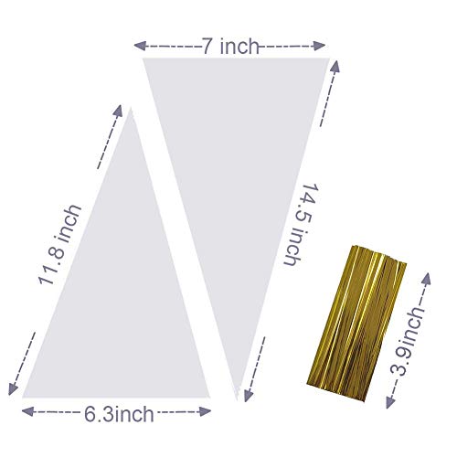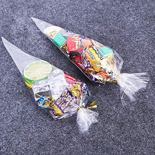 Ausyde Asciugamani di caramelle Borse di plastica trasparente Sacchetto del cono 200pcs sacchetti di caramelle Striscia di rilegatura dell'oro per cioccolato, dolci, Puffreit, usa e getta(Trasparente)