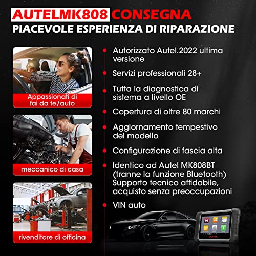 Ampia copertura: autel maxicom mk808 è adatto per la maggior parte dei veicoli obd2 ed è compatibile con molte marche automobilistiche come ford, honda, chevrolet, jeep, toyota, dodge, gm, volkswagen, audi, bmw, mercedes-benz, (vedi lista completa nella descrizione) ed è perfetto per gli utenti che possiedono diverse vetture e professionisti meccanici