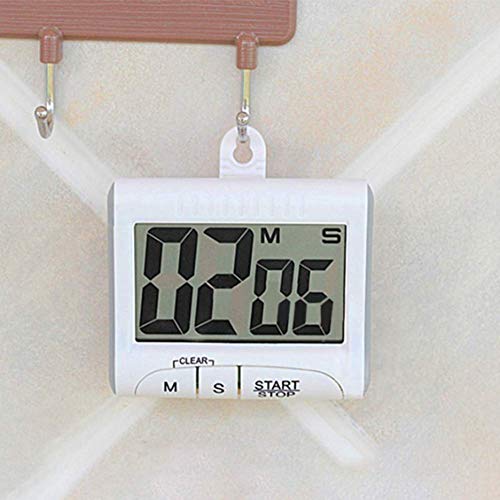 Authda Timer Cucina Digitale con Allarme e Schermo LCD Elettronico 24 Ore Timer da Cucina Supporto per Sospensione Pieghevole Pratico Cronometro Minuto Secondo Conteggio Conto alla Rovescia (Bianco)
