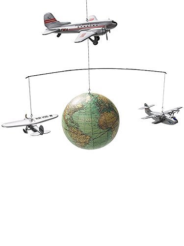 Authentic Models - Mobile "Autour le monde avec avions et monde Boule style rétro