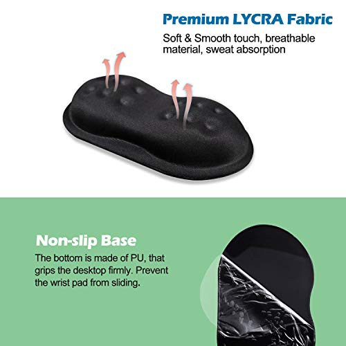 Design ergonomico con fori per il massaggio: design ergonomico con scanalatura a forma di polso sul cuscino di supporto per il mouse, si adatta perfettamente al polso e al palmo della mano. Questo cuscino da polso misura 14 x 7,9 x 2,3 cm, che è un utile complemento da ufficio e gioco.