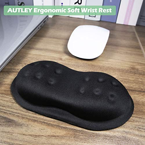 AUTLEY, poggiapolsi in morbida memory foam per mouse, supporto da polso ergonomico, supporto antiscivolo per il polso per impiegati e giocatori, sollievo dal dolore al polso, nero