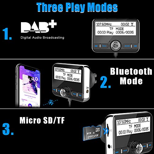【 Crystal Sound Digital Audio Broadcasting (DAB/DAB +) 】 Advanced rispetto ai tradizionali auto trasmettitore FM Bluetooth, radio DAB Adapter inviare segnali digitali invece di segnale analogico, il suono è puro senza rumore. Questo adattatore radio DAB è utilizzato nei veicoli che NON hanno una funzione DAB. Adatto per tutte le auto con presa accendisigari