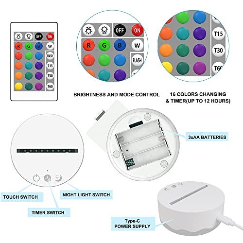 3DL auto ampada, CooPark luce notturna 3D, con 16 colori che cambiano con telecomando + timer + luce bianca calda + porta di tipo C, ideale come regalo di compleanno per ragazzi, uomini e bambini