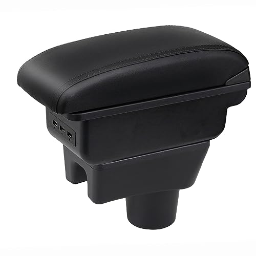 Auto Braccioli per Mirage Attrage Space Star 2014-2018 Doppio Strato Scatola Portaoggetti Console Centrale Interna with 3 USB Charging Port Cuciture nere
