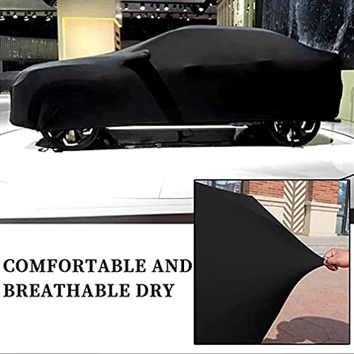 Materiale: la copertura dell'auto è realizzata in tessuto elasticizzato, che ha una forte elasticità e può mostrare perfettamente le linee del corpo. Nessun cedimento o rughe. Il telone traspirante per auto può aiutare l'isolamento termico per mantenere fresca la tua auto. L'orlo elastico circonda la parte inferiore della copertura dell'auto per proteggere la copertura dell'auto dall'esplosione.
