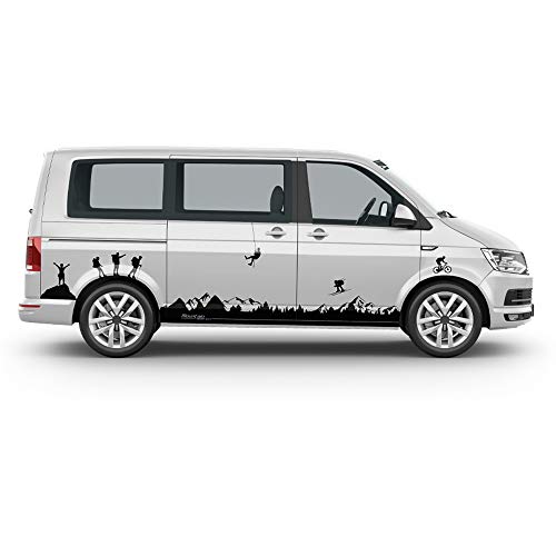 Auto-Dress.de Set di adesivi con paesaggio di montagna, set di strisce laterali, decorazione adatta per VW T4, T5, T6 nel colore desiderato (001 argento cromato, passo corto)