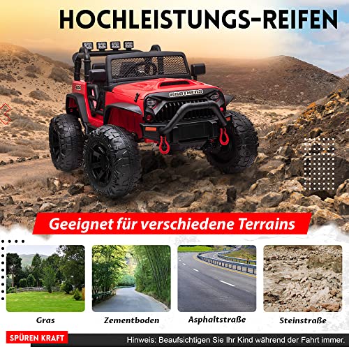 Auto Elettrica Per Bambini a 2 Posti 24v, Avventura Fuoristrada, 2 Motori 200 W, Telecomando 2,4G, 3-8 Km/h, Luci Led, Pneumatici Antiscivolo Extra Larghi, Musica, Bluetooth,Red
