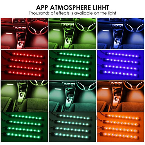 4 pz Led Auto Interni Kit Impermeabili Illuminazione Pianale Auto con 8 Colori 9 Luce del LED, USB RGB Neon Decorazione Luci Striscia Controllo Attivo Suono e Telecomando Wireless per Interni Auto