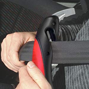 Strumenti di emergenza: tagliare cinture di sicurezza o rompere auto finestra e torcia con notte di emergenza per salvare la vita.