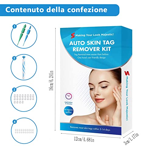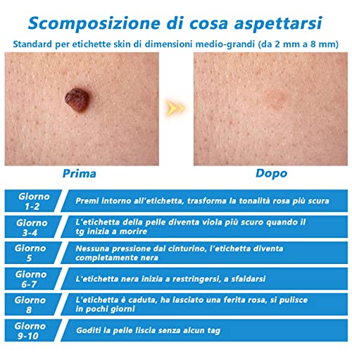 【Come funziona】 Questo dispositivo di rimozione funziona interrompendo l'afflusso di sangue alle etichette cutanee e provocando la caduta delle etichette cutanee in pochi giorni. Funziona senza lasciare nessuna cicatrice e nessuna sensazione. Dì addio a procedure cosmetiche o dermatologiche costose e dolorose.