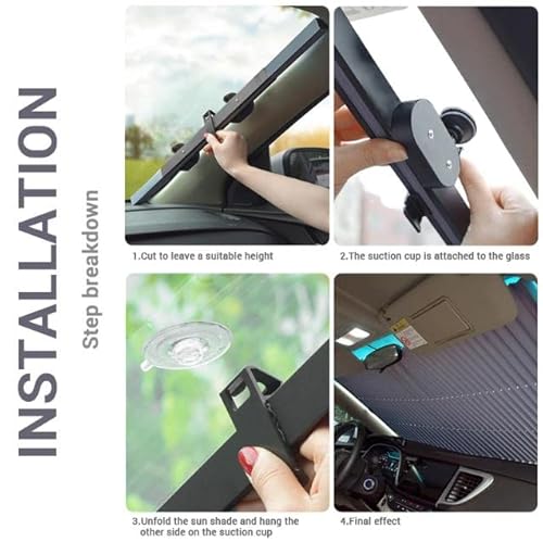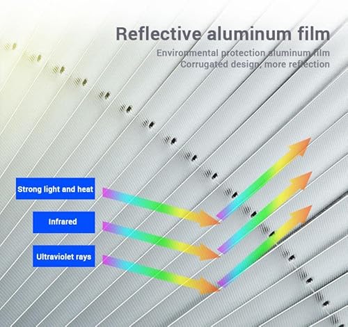 ★【Materiale di alta qualità】:vengono utilizzati 4 strati di materiali di isolamento termico, anti-invecchiamento / protezione solare / anti-ultravioletto / non sbiadisce / no screpolature, eccellente protezione a tutto tondo. Il foglio di alluminio argentato può isolare più del 90% della luce solare.Design unico a forma di ventaglio, funzione telescopica automatica, apertura facile, leggero e facile da piegare, veloce da riporre non occupa spazio.