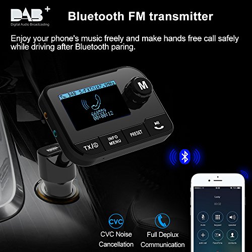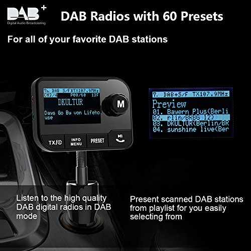 Auto DAB+ Radio Digitale Adattatore con Portatile DAB+ Radio Tuner/Trasmettitore FM/Bluetooth Car Kit MP3 Music Ricevitore/3.5mm AUX Out/2.3' LCD Display/Caricabatteria per Auto/SD Card/Antenna Attiva