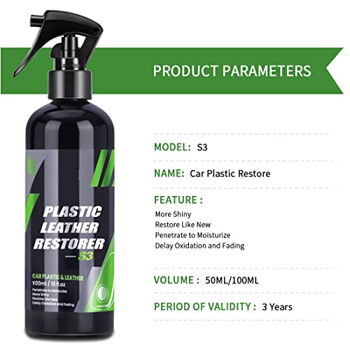 AUTO-S3 Plastic & Leather Restorer, Car Plastic Renovator Liquid Restorer Spray, Plastic & Leather Restorer, 100ML Plastic And Leather Restorer, Leather & Plastic Restorer 50ML (100ML,1Pcs)