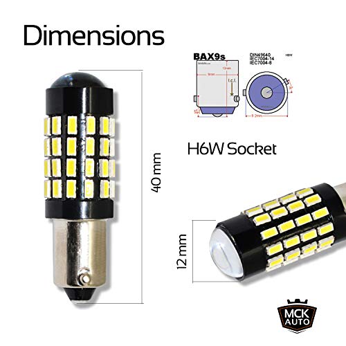 MCK AUTO - lampadine H6W LED bianco puro molto luminoso di posizione Xenon Canbus BAX9S - 200lm lumens per lampadine y colore 6000k bianco puro - 2 pezzi nella confezione (per lato destro e sinistro)