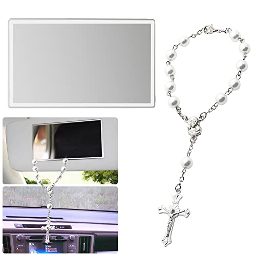 Auto Specchio Cosmetico,Specchietto Retrovisore Interno Auto, Auto Specchio Trucco,Specchio per Uso Cosmetico Acciaio Inox,Specchio Parasole Per Auto,Specchio Cosmetico Autoadesivo,con Auto Rosario