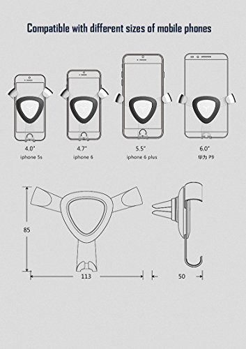 Auto del telefono, Air Vent Gravity sensing auto serratura metallo montaggio telefono intelligente no touch design lato funzionare per iPhone x/8/7/6s/Plus/5S/Samsung S8/S7/Note e altri smartphone di 4 - 15,2 cm